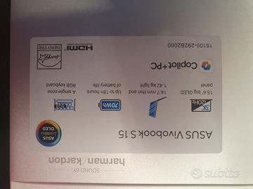 Causa errato acquisto - NUOVO 03/2025 - MAI USATO - vendo PC portatile ASUS VivoBook S15 OLED S5507QA in Alluminio, 15,6", Processore SnapDragon XElite ARM, 16GB RAM, 1TB SSD PCIE, Qualcomm Adreno GPU, WIN 11 PROFESSIONAL.