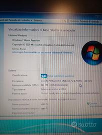 Fujitsu Computers Siemens Amilo Wondows 7 home premium Ram 512 mb utilizzabile esclusivamente con presa corrente, la batteria non regge Da collezione