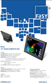 Vendo PC POS FASY FT15'' touch screen CPU: Intel Celeron J9100 RAM: 4GB USB: Type A x5 O.S.: PosReady7 Display: 15" 1024x768 Memoria: SSD 32GB la descrizione completa nella foto dell'annuncio.