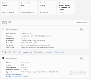 🔹 Sistema: Windows 11 Pro aggiornato