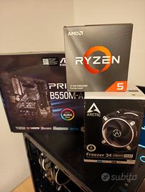 PC Assemblato basato su sk. Madre Asus B550M-A (supporta Gen5), CPU Ryzen 7 5800x (8 Cores/16 threads, 105W DTP, AM4 socket, 36 MB Cache, Boost di Frequenza fino a 4,7Ghz max), Artic Freezer 34 duo {pasta termica appena cambiata con Artic MX4}, 32Gb DDR4, nVME SSD 500Gb, Alimentatore semi modulare 850w e sk. Video nVidia P2200 5Gb.