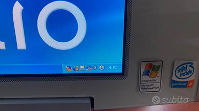Pentium 4 CPU 2,80 GHz, Sistema Operativo Windows XP, HD 150Gb, 1 Gb RAM, Unità DVD-RW, Unità Memory stick, diverse applicazioni Sony installate (video, musica, foto, ecc..) batteria in tampone da sostituire.