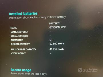 Vendo pc perfettamente funzionante, tutti i dati di sistema e capacità batteria sono in foto. Non trattabile