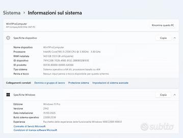 Causa inutilizzo, vendo computer Windows HP Compaq 8200 Elite con Intel Core i5 2500@3.30GHz, 14 Gb RAM, SSD 512 Gb. S.O. Windows 11Pro+Office 2021 Professional Pro il tutto licenziato e di fresca e nuova installazione.