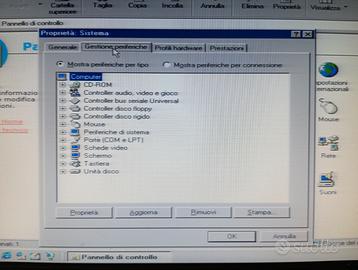 PC assemblato scheda madre Intel TC430HX- Processore Intel Pentium MMX 200 MHz - memoria 64 mb Edo RAM - Hdd 8,4 GB ide - fdd 1.44 mb - lettore CD 52x - scheda video ATI 264vtpci Mach64 2 mb Edo VGA s.o. Windows 95 - driver - e giochi installati vari e copie su CD - manuale scheda madre - completo di tastiera Genius, mouse Flatron PS/2 e cavo alimentazione (il monitor non e' in vendita e solo a scopo dimostrativo) il PC funziona perfettamente e' stata sostituita la batteria bottone e la pasta termica al processore
