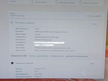 PC WIN11, Ryzen 3600, 32GB RAM, 2 Dischi fissi
