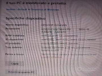 PC workstation Hp compreso di monitor, tastiera, mouse e cavetteria. Windows 10 pulito e riportato alle condizioni originarie. Il monitor e un 19" LCD che può essere utilizzato anche come TV con digitale terrestre DVB-T ed è compreso di telecomando. Caratteristiche del PC come da foto