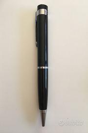 Penna in metallo, con 5 ricariche, con lettore microSD e cavetto USB. Inserendo memoria microSD fino a 128 GB (non fornita) si può utilizzare come una memoria portatile segreta. E' compreso un lettore di memoria microSd esterno USB. La penna ha altresì una videocamera NON funzionante, ma che si potrebbe provare a riparare. Nuova, mai usata in confezione originale.