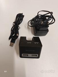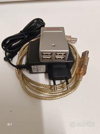 1-Fantec ExpressCard USB 3.0 per laptop. Si tratta di una scheda di espansione progettata per essere inserita nello slot ExpressCard di un computer portatile (tipicamente modelli più datati) per aggiungere porte USB 3.0 con velocità di trasferimento fino a 5.0 Gbps. 2- Sitecom adattatore Bluetooth 2.0 USB della Sitecom, un dispositivo vintage progettato per aggiungere la connettività Bluetooth a computer che ne erano sprovvisti. 3-Sitecom, un hub desktop con 4 porte USB 2.0. Tipo di Connessione: USB 2.0. Numero di Porte: 4 porte USB alimentatore esterno per fornire corrente sufficiente ai dispositivi collegati. Velocità: Velocità di trasferimento dati fino a 480 Mbps. 4- Hub USB 2.0 a 4 porte di Belkin noto anche come Clip-On USB Hub. È progettato con una clip integrata che permette di agganciarlo facilmente al bordo della scrivania o a un fascio di cavi per ridurre l'ingombro. Connettività: Dispone di 4 porte USB 2.0 a valle (downstream) per collegare periferiche come mouse, tastiere o stampanti. Supporta trasferimenti dati fino a 480 Mbps ed è retrocompatibile con i dispositivi USB 1.1. Può funzionare in modalità passiva (alimentato dal computer tramite il cavo USB-A incluso) o in modalità autoalimentata utilizzando l'alimentatore esterno visibile nella tua foto per dispositivi che richiedono più energia. 1-Fantec ExpressCard USB 3.0 2-Sitecomadattatore Bluetooth 2.0 3-Sitecom,hub desktop 4- Belkin Hub USB 2.0 a 4 porte