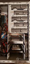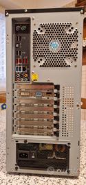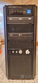 Case tower Cooler Master, scheda madre Asus P7P55D-E, processore Intel i5, 8 Gb ram, 3 HD 250+160+80 Gb di memoria, scheda video Asus 2 Gb uscite DVI e HDMI, alimentatore Cooler Master 600W, lettore CD/DVD LG, masterizzatore CD/DVD LG, uscite usb 9 + 2, scheda audio integrata 7+1, scheda Lan integrata. Monitor led 21" Samsung, tastiera e mouse cordless, telecamera. Sistema operativo Windows 10 pro. Pacchetto Office installato.