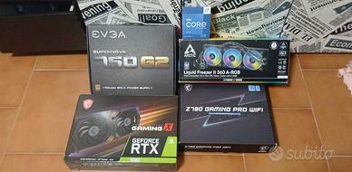 In vendita questo PC DA GAMING perfetto sotto ogni aspetto e composto da: Processore intel i7 13700 kf, lga 1700 Dissipatore liquid freezer II 360 A-rgb Scheda madre msi gaming pro z790 ddr5 wifi e bluetooth integrati, rgb Ram ddr5 kingstone fury 32gb (16x2) Scheda video msi gaming x geforce 3060 12 gb, ray tracing, dlss Case mars gaming ATX, porte usb 2.0 e 3.0 sul frontale Alimentatore evga supernova 750 w g2, 80 plus gold modulare Archiviazione su ssd tipo Sata kingstone 500gb Lascio installato windows 11 attivo e Cyberpunk per testare la funzionalità del pc. Diponibile a per far provare il computer prima dell'acquisto, ritiro in loco in zona Navacchio (PI). Per chi fosse più lontano e necessiti di una spedizione posso inviare senza problemi, ho già un imballo adeguato alle dimensioni e al peso del pc, di solito spedisco con POSTE DELIVERY WEB, tracciata e veloce previo pagamento anticipato (paypal o bonifico, è indifferente) Non compresi nell'annuncio tastiera mouse monitor full hd 4k 2k, asus gigabyte logitech amd ryzen am4 am5 z690 b760 ddr4 corsair cooler master zotac nzxt antec