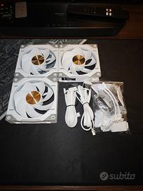 La confezione è completa e comprende 3 ventole più cavetteria, viti e coperchietti.