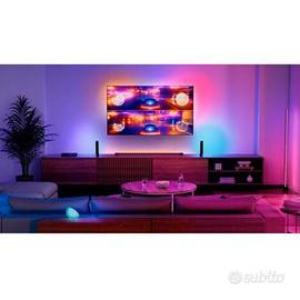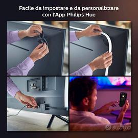 Prova l'emozione del teatro a casa tua con la Philips Hue Play gradient lightstrip. Ottieni più colori di luce che reagiscono al contenuto sullo schermo. Fissala su TV da 65" a 75" montate a parete o poggiate sugli appositi supporti inclusi. Mostra meno Hue Bridge necessario Realizzato per TV da 65" a 70" Include alimentatore e supporti Fonde luce bianca e colorata Richiede un Hue Bridge e un Hue sync box Usate un mese, praticamnete nuove