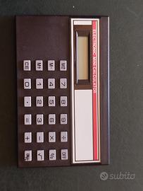 Piccola CALCOLATRICE ELECTRONIC MINI CALCULATOR condisplaya LCDa 8 cifre alimentata da una batteria a bottone in dotazione masicuramente esausta.Molto eleganterealizzatain plastica NERA e BIANCA,misura cm 9x0,5x5,5 esegue le 4 operazioni,ha 4 tasti diMEMORIAma anche PERCENTUALE nonchè tasto RADICE QUADRATA