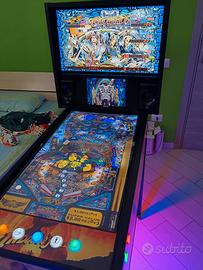 pinball virtuale con interno PC Intel i5 7500 16 GB di RAM DDR4 SK video GTX 1650 4 GB SSd da 1 TB con 1000 tavoli da gioco internamente e posizionato anche un subwoofer con casse esterne, monitor da 32/24/10.5 tutti full hd tasti con microswhith,2 ventole di raffreddamento entrata e uscita d'aria,2 faretti led gu10.Con possibilità di personalizzarlo.