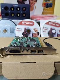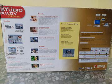 Crea filmati amatoriali artistici sul tuo PC indipendentemente dalla videocamera utilizzata. Studio AV/DV è una soluzione interna di editing del video, comprendente la versione completa di Pinnacle Studio versione 9, il più potente software per l'editing video della sua classe. COMPATIBILE SOLO CON SISTEMI OPERATIVI 32 BIT Testato suWindows® 2000, Me, 98SE, 98, XP, windows 7, windows8.1 32bit, windows 10 32bit Completo di scatola originale manuale tre software per il montaggio filmati e foto con cavi collegamenti e stazione box per acquisizione come si vede dalle foto. Contattatemi se siete interessati per la consegna manualmente in zona con formula visto e piaciuto grazie.
