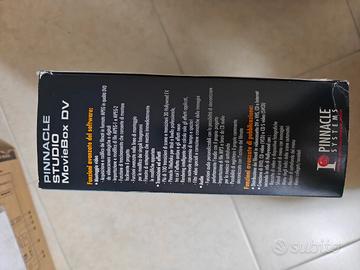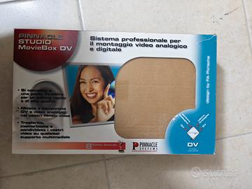 Pinnacle Studio MovieBox DV è la soluzione esterna per acquisire da fonti DV e AV (videocamere DV...), montare e riversare i filmati video su supporto ottico CD e DVD o su nastro DV e VHS / S-VHS. Da collegare al computer utilizzando la veloce porta FireWire. Con Studio MovieBox DV viene anche fornito il software Studio 8, attraverso cui è possibile effettuare il montaggio dei propri filmati in modo semplice e rapido. Come nuovo