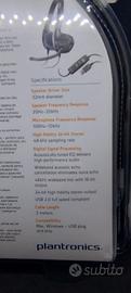 coppia di cuffie plantronics 628 nuove, certificate Skype ma compatibili con Teams, Meet, Discord, centralini VoIp, caratteristiche delle cuffie padiglione 32mm, frequenza 20Hz - 20kHz, microfono 100hz - 10kHz, audio 24bit stereo 48kHz, 2 metri di cavo, compatibili Windows e Mac.