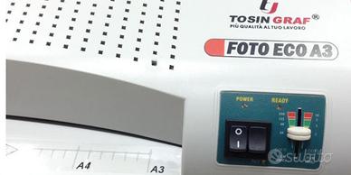 Tosingraf FOTO ECO A3 Laminator Plastificatrice formato A3 professionale . Model: FOTO ECO A3 . Laminating Width:A3 (330mm) . Pouch Thickness: 250mic . Temperature Control:68-250 . Laminating Speed:420mm per minute . Power :680W 3.1A Power Supple:AC220-240V/50Hz . Dimension WxDxH: 490 x190 x110mm . Weight:4.3 Kg