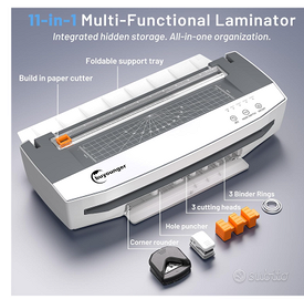 garantisce calore e pressione precisi per una plastificazione impeccabile, senza bolle o grinze. Compatibile con fogli da 80-250 micron, dalle dimensioni di un biglietto da visita all'A3. La modalità a caldo è ideale per documenti di uso frequente, quella a freddo per materiali sensibili al calore come carta termica e dipinti a olio (richiede fogli autoadesivi). Perfetta per ufficio, scuola, casa o attività commerciali.