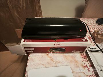 Vendo plastificatrice a caldo marca Hama, modello Basic L47A, perfettamente funzionante e in ottime condizioni. Caratteristiche principali: Formato massimo: DIN A4. Spessore pouch: fino a 100 µm. Tempo di riscaldamento: rapido con indicatori LED (rosso/verde). Sicurezza: dotata di tasto di sblocco (release button) per rimuovere i fogli in caso di inceppamento. Protezione: ideale per proteggere documenti, foto e certificati da acqua e sporco. Completa di scatola originale.