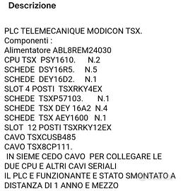 vendo plc modicon con varie schede e stato smantellato da un impianto funzionante senza anomalie dismesso per rinnovo