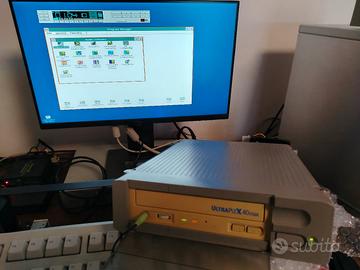 Lettore Scsi esterno della plextor, un marchio di grande qualità testato e funzionante come dimostrato in foto, non posso fornire i cavi di collegamento, quindi senza cavi, mancano 2 gommini sotto. Ottimo per computer retrò difficile da reperire.