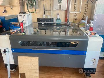 Laser co2 da 150w tubo reci piano di lavoro 1000x1600mm per un altezza regolabile di 240mm il laser ha 4 anni di vita viene venduto con il suo chiller se di vuole a parte posso dare anche aspiratore. La macchima è perfettamente funzionante è tuttora a lavoro Il pedo complessivo della macchina e di circa 700 kg provvista di ruote e piedini dí livellamento.. a chi è interessato deve venire con camion con gru a ritirare. Disponibile a visione e prova NO PERDITEMPO! Non rispondo a messaggi ridicoli