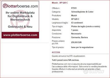 Plotter Mutoh serie XP 620C funzionante a prezzo regalo a chi se lo viene a prendere ;-) zona Battaglia terme PD; Inclusi accessori, manuale, ecc ecc