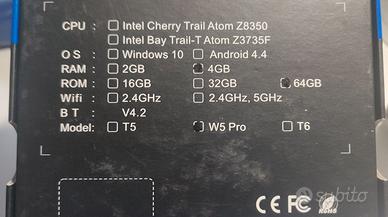 Pocket PC Windows-HDMI-USB3 4Gb Ram 64Gb Rom - Modello W5 Pro Intel Atom Z8350 1.44 GHz Aggiornato - Usato pochissimo. ATTENZIONE! Per chiarezza: é un Intel Atom 1.44 NON è un missile. Buono per navigare o per creare dei monitor pubblicitari.