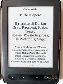 PocketBook 626 Touch Lux 2 e-reader HD con luce integrata Compreso di custodia e 50 eBook già presenti in lingua italiana. STATO: In ottime condizioni e perfettamente funzionante. Display senza graffi. Dotato di ingresso micro USB per la ricarica e il trasferimento dati con un semplice cavetto micro usb (non fornito). COSA INCLUDE: eReader: PocketBook 626 (Touch Lux 2). Accessori: Custodia a libretto protettiva. Bonus: circa 50 libri già presenti. SPECIFICHE TECNICHE: Schermo: 6" E Ink Pearl HD (antiriflesso). Luce: Frontlight integrata e regolabile. Memoria: 4 GB interni (espandibili con MicroSD). Formati: supporto nativo EPUB, PDF, MOBI, TXT. Comandi: puoi usare il touchscreen o i tasti fisici. VANTAGGI: Batteria con una buona durata. Puoi caricare tutti i formati più comuni. Già configurato in italiano. Prezzo non trattabile, già ribassato.