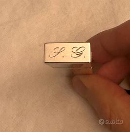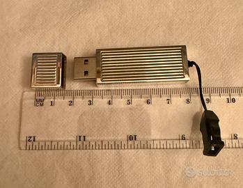 Contenitore con cappuccio porta chiavette USB in argento. E’ compresa una chiavetta USB di circa 4GB che si può sostituire (come da foto è removibile). Sul cappuccio del porta-chiavetta sono serigrafate le lettere S.G.