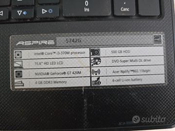 Come da titolo vendo Acer Aspire 5742 G da riparare o per ricambi. Il portatile a volte si accende con monitor nero, altre volte si accende normalmente altre ancora si scalda e si spegne. Si vende con alimentatore e privo di hardisk ma con 2 banchi di ram da 2 gb. No perditempo o sognatori. Si accettano offerte congrue.