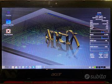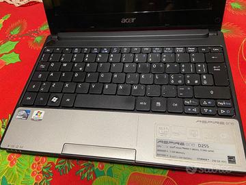 Vendo portatile Acer Aspire One D255 con alimentatore, potenziato a 2 GB di RAM e a 500 GB di HDD. La batteria e la batteria tampone sono da sostituire. Il dispositivo è perfettamente funzionante e si alimenta con l'alimentatore, ma presenta un difetto: quando il cavo viene smosso in un certo modo, tende a non fornire più corrente. Il problema si verifica tra la presa di corrente del portatile e il connettore del cavo. Basta non muoverlo per far sì che funzioni correttamente. Il sistema operativo installato è antiX Linux.