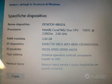 in buone condizioni display difettoso SSD 128Gb 2Gb RAM windows 10 batteria viva