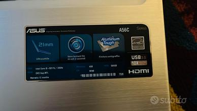 ASUS A56CM-XX060H Intel® Core™ i3 i3-3217U Computer portatile 39,6 cm (15.6") HD 4 GB DDR3-SDRAM 500 GB HDD NVIDIA® GeForce® GT 635M Windows 8 Nero, Acciaio inox