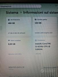 pc portatile Asus vivobook S14, 8gb di ram, disco fisso 500gb ssd nuovo, windows 11 professional 25h2 originale e attivo, solo wifi no scheda di rete, schermo 14 pollici, processore Intel Core I5-8250 1.6ghz,