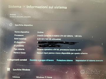 Portatile Asus Zenbook 13 pollici