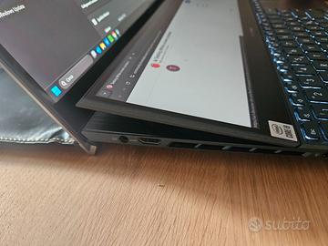 Vendo per inutilizzo PC ASUS Zenbook pro Duo 15 (modello UX582) Laptop unico nel suo genere grazie al doppio schermo touch (ScreenPad Plus) inclinabile. Ideale per multitasking, grafica, design, gaming e produttività. **Specifiche tecniche:** - Processore Intel® Core™ i9-10980HK Processor 2.4 GHz (16M Cache, up to 5.3 GHz, 8 cores) - RAM: 32 GB LPDDR4X - Storage: SSD 1 TB M2. NVMe PCIe - GPU: NVIDIA® GeForce® RTX™ 3070 Laptop GPU 8GB GDDR6 Boost up to 1440MHz at 90W (110W with Dynamic Boost) + Intel Iris Xe - Display principale: 15.6", 4K (3840 x 2160) OLED 16:9, 0.2ms response time, 550 nits - Display secondario: support ScreenPad™ Plus (14" 3840 x 1100(4K) IPS-leve Panel Support Stylus - 2 Thunderbolt, WiFi 6, Bluetooth 5.0 - Peso: 2.3 kg - spessore 21 mm **Incluso nella confezione:** ✅ Custodia originale ASUS ✅ Alimentatore originale ✅ Stylus (pennino) Laptop perfettamente funzionante (batteria e schermi eccellenti) **Consegna a mano o spedizione.** 📩 Scrivimi in privato per altre info. prezzo leggermente trattabile