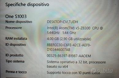 Notebook 2 in 1 One 10 S1003-1819 Monitor 10.1 HD Touch Screen Intel Atom x5-Z8350 Quad Core Ram 4GB eMMC 128GB Windows 10 Home