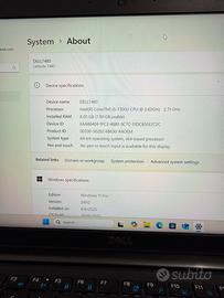 Portatile Dell latitude 7480 core i5 8GM RAM 235SS