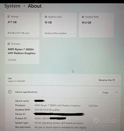 Vendo Lenovo Legion 5 15ACH6H, acquistato su Amazon (con scatola originale).