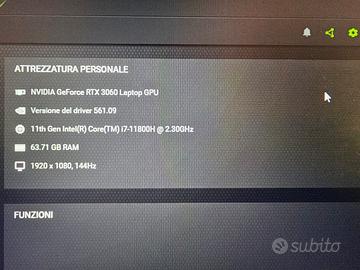 Salve vendo portatile da gaming MSI PULSE GL76 , perfettamente funzionante con lettere leggermente consumate , 1TB di memoria .Il PC necessita di essere collegato all'alimentazione perché la batteria dura molto poco. Pasta termica (ARTIC) cambiata sia su CPU (I7-11800H) che alla GPU e RAM maggiorata da 16gb a 64gb ( 32gbx 2 VENGEANCE DDR4 3200MHz ). Non spedisco , solo scambio a mano con possibilità di provarlo. Non scambio per altro VENDO SOLO