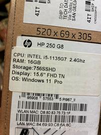 Portatile HP 250 G8 CPU: INTEL i5-1135G7 2.4Ghz RAM: 16GB Storage:756SSHD Display: 15.6" FHD TN OS: Windows 11 Pro Mai usato