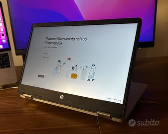 Vendo notebook HP Chromebook x360 modello 14a-ca0008nl, in condizioni eccellenti, usato pochissimo e perfettamente funzionante. Schermo touchscreen Full HD da 14" (35,5 cm), ideale per lavoro, studio o svago. Batteria con lunga durata (2 celle, 47 Wh) e processore Intel Celeron N4120. Leggero e versatile, con possibilità di utilizzo in modalità laptop o tablet (convertibile a 360° - come mostrato in foto).