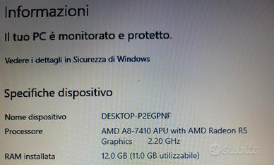 PC Portatile HP Laptop 15.6" - 12GB RAM - 1TB HDD Laptop HP 15.6" - 12GB RAM - 1TB Hard Disk - Perfetto per Studio e Ufficio Descrizione: Vendo computer portatile HP (modello 15-ba099nl) in buone condizioni, ideale per studenti, smart working leggero o navigazione internet. Il PC è stato appena formattato e pulito, pronto all'uso con Windows già configurato. Specifiche Tecniche: Processore: AMD A8-7410 Quad-Core (fino a 2.5 GHz) Memoria RAM: 12 GB DDR3L (ottima per il multitasking quotidiano) Archiviazione: Hard Disk da 1 Terabyte (1000 GB), tantissimo spazio per foto, video e documenti Schermo: 15.6 pollici HD (1366 x 768) con colori brillanti Grafica: AMD Radeon R5 integrata Connettività: Porte USB, HDMI per collegarlo alla TV, lettore schede SD e Wi-Fi Stato del prodotto: Software: Windows riportato alle impostazioni di fabbrica (pulito), Licenza originale. Hardware: Tastiera e schermo perfettamente funzionanti e integri Incluso: Alimentatore originale incluso. NOTA SULLA BATTERIA: Il computer funziona perfettamente ma deve essere utilizzato collegato all'alimentatore (incluso). La batteria originale non è presente/non tiene la carica. È possibile acquistarne una nuova online con circa 30€ se si desidera utilizzarlo in mobilità.