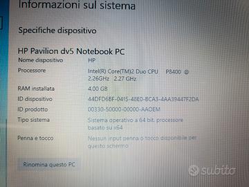 Vendo portatile HP funzionante e già resettato.Modello Pavilion dv5 con RAM da 4 GB e hard disk da 232GB con sistema operativo Windows 10 pro .N.B il PC presenta segni di usura. NB NON SPEDISCO