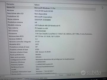 Portatile HP probook 440 G8 Windows 11 pro 24H2 Intel core i5 - 1145G7 2.61 GHz 8GB RAM Intel iris Xe graphics 475 GB SSD 3x usb 3.1 1x HDMI 1x usb C 1x lettore micro sd 1x scanner impronta digitale Tastiera retro illuminata Caricabatterie hp e scatola