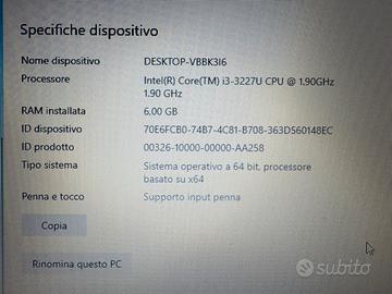 PROCESSORE Intel(R) core TM i3-3227U CPU @1.90GHz