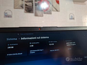 Portatile lenovo AMD ram 12gb win 11 pro ssd 240gb